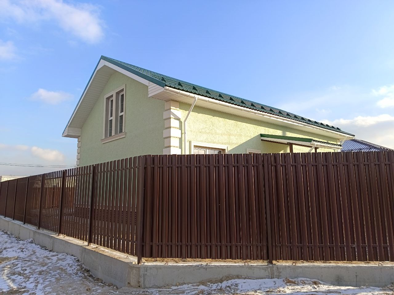 Земельный участок: 6 соток, ровный, правильной формы, перед домом предусмотрено место для парковки 2-х авто. Забор - металлический штакетник высотой 2м.