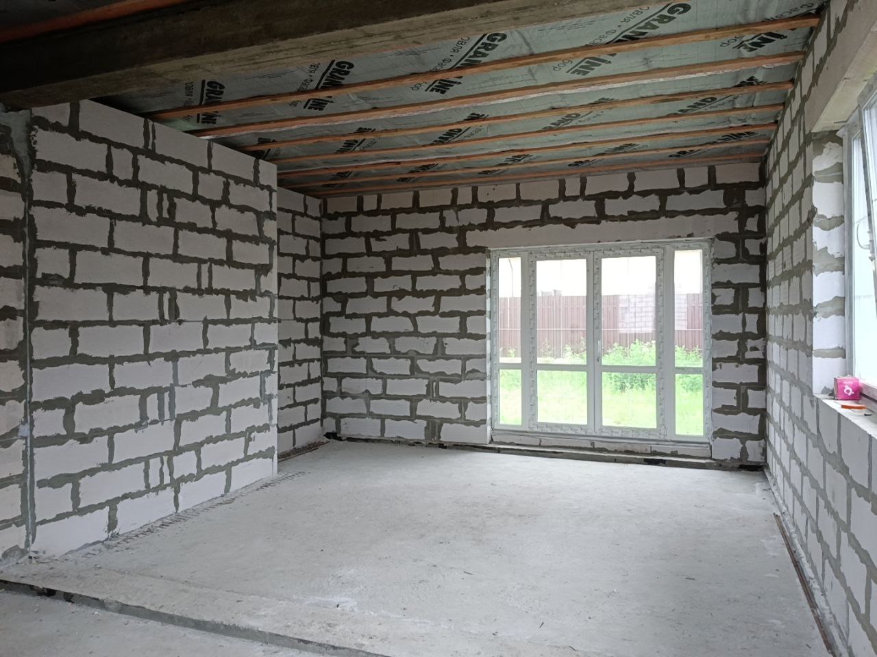 Дом без внутренней отделки. Установлены межкомнатные перегородки. Выполнено утепление перекрытия.