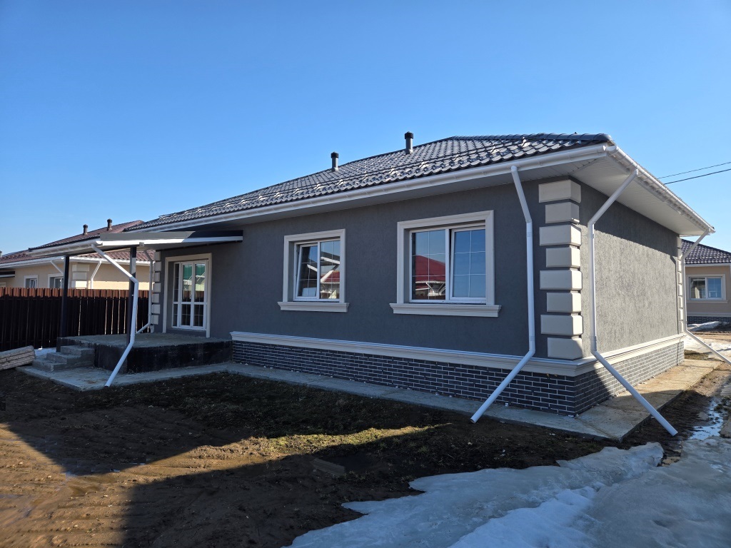 - Фасад: Штукатурка, покраска, фасадный декор; Цоколь утеплен и облицован термопанелями; выполнена отмостка;